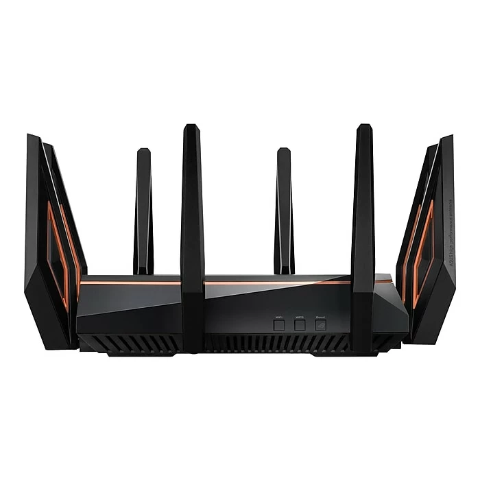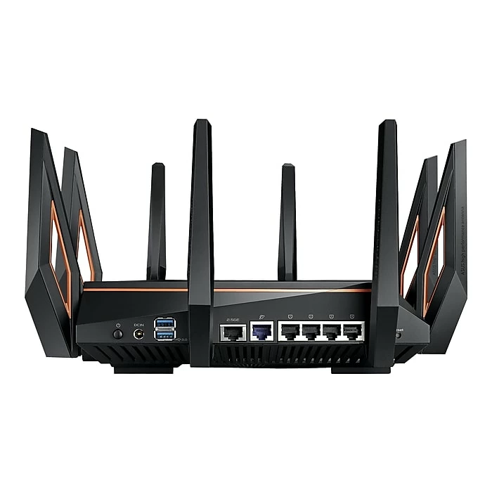 AX11000 Tri-band Wi-Fi gaming router – world’s first 10 Gigabit Wi-Fi router with quad-core processor, 2.5G gaming port, DFS band, WTFast, Adaptive QoS, AiMesh for mesh Wi-Fi system and AiProtection network security.