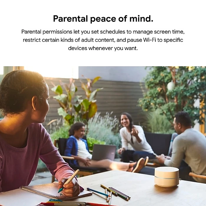 Google WiFi provides whole-home coverage, up to 1500 sq ft per point. The system is scalable and flexible, additional routers and points can be added to fit homes of any size. Google WiFi is dual-band and provides a self-healing network that can support up to 100 connected devices and multiple simultaneous 4k video streams. Requires a modem and active broadband internet connection, a nearby electrical outlet for each router, a Google account, and a compatible mobile device.