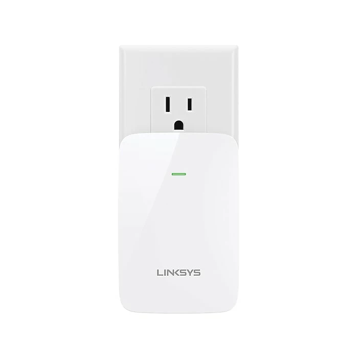 Boost Wi-Fi range for better coverage and signal strength with the Linksys RE6350 AC1200 Wi-Fi range extender. Enjoy uninterrupted streaming, smooth online gaming, and more thanks to this range extender’s simultaneous wireless dual bands. The RE6350 features data transfer speeds up to N300 + AC867 Mbps and can also focus the Wi-Fi signal directly to your connected devices for optimal performance, thanks to the beamforming technology. This range extender is compatible with all Wi-Fi routers, including your existing unit or those from service providers. Crossband technology allows information to be obtained on one band and transmitted on the other, resulting in reduced dropped data packets, faster media transfer speeds, and a stronger, more consistent signal throughout your home. The RE6350 features a slim design and compact footprint: plug it into the bottom power outlet and you’ll still have access to the outlet just above it. Also, this range extender automatically receives firmware updates from Linksys as they are released, helping maintain up-to-date security.