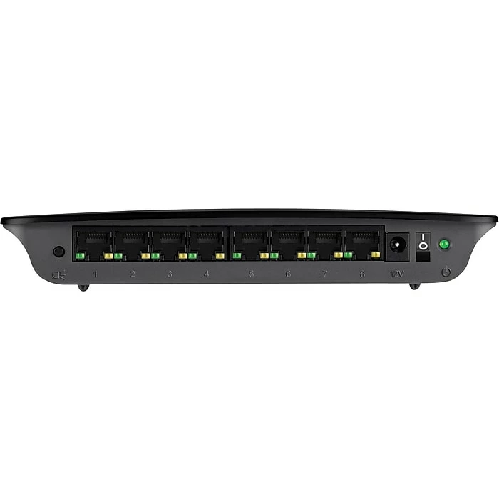 Expand home networks to include computers, printers, storage, gaming consoles, and other wired devices. The Linksys SE2800 8-Port Gigabit Ethernet Switch delivers speeds up to 1,000 Mbps through its ports, transmitting media and files ten times faster than a standard Ethernet connection. The Linksys SE2800 is a plug-and-play device, requiring only an Ethernet cable and power cord to operate. No software configuration is needed; just connect your computers, printers, and other devices, and they are ready for use. Equipped with Quality of service (QoS) traffic prioritization technology, the Linksys SE2800 delivers smooth video streaming and gaming. Power-saving features include auto power-down to disable unused ports, sleep mode for inactive ports, and smart power mode that adjusts power expenditure for cable size.