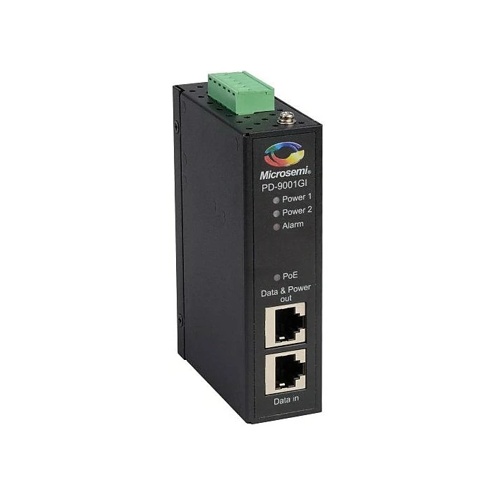 The Microsemi® PD-9501GI/DC single-port industrial PoE injector is a high-power solution for remote powering of current and emerging high-power applications. This PoE injector generates up to 60 W of output power, which is IEEE 802.3at compliant and enables remote powering for a range of applications including 802.11n access point, PTZ cameras and for other IP terminals. The device offers you a plug-and-play installation and supports 10/100/1000 Mbps performance over both 10/100Base-T and 1000Base-T network devices. The design of this industrial injector withstands the temperature within the range of -40 to +75 deg C, hence it is perfect for outdoor applications.