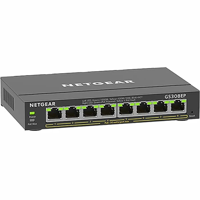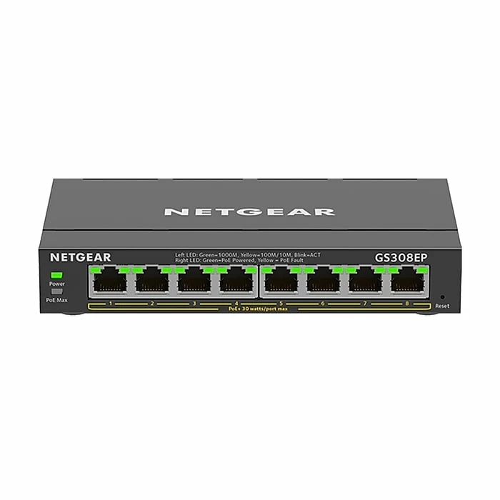 The Netgear 8-port Gigabit Ethernet PoE+ Plus switch delivers essential business networking features and powers PoE+ devices like VoIP phones, IP cameras, and more.