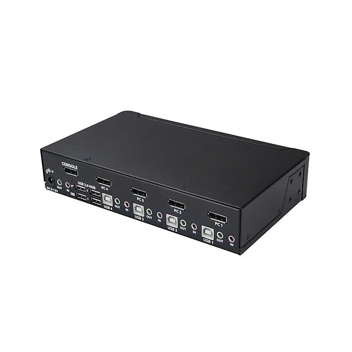 This 4-port DisplayPort KVM switch combines a 4K 60Hz display with KVM switch control of four connected PC and MAC computers – Integrated USB 2.0 hub – Easily mount this DisplayPort KVM switch – 4 port KVM switch / 4K KVM Switch / Computer switch box / DisplayPort KVM switch / DisplayPort switch / DisplayPort 1.2 KVM / DisplayPort KVM 4K / DisplayPort switch / DisplayPort switcher / DP KVM switch / Keyboard mouse switch / Keyboard switch / KVM audio switch / KVM DisplayPort / USB KVM switch