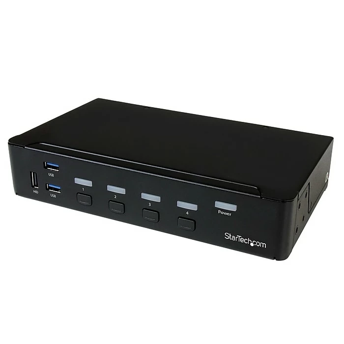 The StarTech.com® SV431HDU3A2 4-port HDMI KVM switch allows you to control four HDMI computers with a single monitor, keyboard and mouse. This KVM switch has a built-in 4-port USB 3.0 hub that allows you to share USB peripheral devices between each connected computer. Using USB 3.0, you can achieve data transfer rates up to 5 Gbps, ensuring flawless performance for your USB peripherals. This KVM switch supports HDMI display of 1920 x 1080 video resolutions.