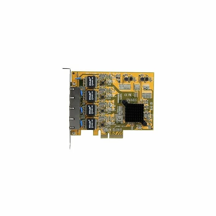 The StarTech ST1000SPEX43 4-port PCIe Gigabit network adapter card offers 4-channel networking and a maximum throughput of up to 1000 Mbps in each direction. It features the Realtek RTL8111G chipset for reliable network connections to your server or computer. This adapter supports full-duplex flow control, auto negotiation with next-page capacity, up to 9K jumbo frame, IEEE 802.1Q VLAN tagging, IEEE 802.1P layer 2 priority encoding, wake-on-LAN and remote wake-up. It is great for many SMB and enterprise applications such as virtualized environments that require multiple NICs.