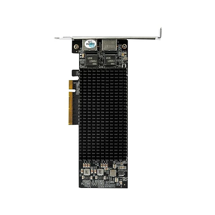 This dual-port 10Gb PCIe network card offers a versatile and low-cost way to deploy 10GbE network connectivity. It adds two copper Ethernet ports to your server or desktop computer and provides Multi Gigabit Ethernet access to your network at five speeds: 10G, 5G, 2.5G, 1G and 100Mbps. The 10GBASE-T NIC provides additional bandwidth using your existing Ethernet infrastructure to help reduce the cost of cabling upgrades. The network adapter card adds two Ethernet ports to your workstation through an x8 PCIe 2.X (or higher) slot. It features 10GBASE-T technology, supporting advanced Multi-Gigabit systems, including Cisco campus switches and Aruba Networks access points. The NIC card also supports additional features including 9K Jumbo Frames, Autonegotiation, Auto-MDIX and 802.1q VLAN tagging. The dual Tehuti TN4010 + Marvell 88X3110 chipset, compliant with IEEE 802.3az, ensures peak operation and reduced power consumption. The decreased consumption minimizes the heat generated to avoid operating temperatures increasing within your server case.