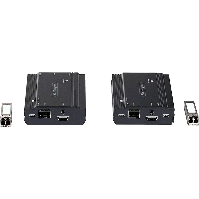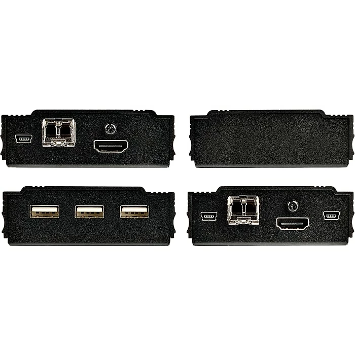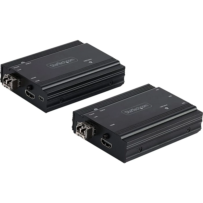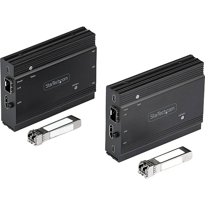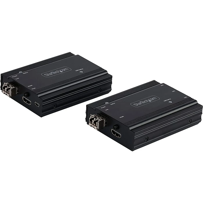 This StarTech HDMI KVM extender kit lets you use a keyboard, mouse and monitor to remotely control any computer over a point-to-point fiber connection. When combined with a KVM switch, the KVM console extender can be used with multiple computers. The extender features three USB HID ports that enable you to connect HID devices, like your keyboard and mouse.
