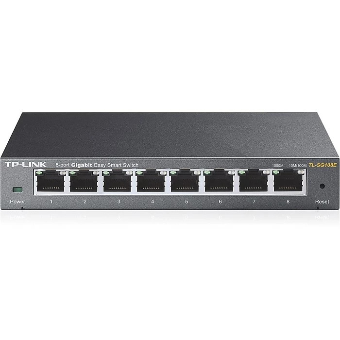 TP-LINK® 8 Port gigabit easy smart switch has port mirroring, loop prevention and cable diagnostics features to monitor traffic behaviors. Switch complies with IEEE 802.3/802.3u/802.3ab/802.3x standards and has metal case for strength.
