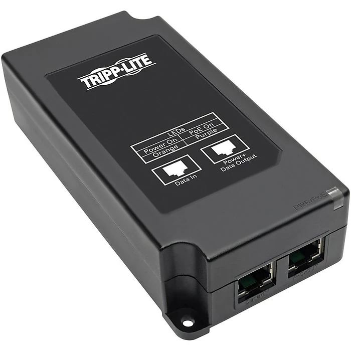 Adds PoE Devices to Your LAN Without a PoE Switch: Now you can add a surveillance camera, wireless access point, VoIP phone or other PoE (Power over Ethernet) device to your home or office network, even if your network switch doesn’t support PoE. Instead of making an expensive upgrade to a PoE switch, you can use this single-port PoE+ injector to send 30 watts of power, as well as Gigabit Ethernet data, through your existing Cat5e/6/6a cabling. Saves You Time and Money on Unnecessary Equipment Updates: This compact PoE plus injector delivers 10/100/1000 Mbps of data and up to 30 watts of power using existing Cat5e/6/6a cables. That means, in addition to not buying a new PoE network switch, you also don’t need to install new AC power lines and electrical outlets. This cost-effective midspan injector sends DC power and Ethernet data through your Ethernet cable, cutting down on cable clutter, equipment costs and installation time and labor. Expand Your Wireless Network Up to 328 ft.: The NPOE-30W-1G delivers both power and data to any IEEE 802.3at (PoE+) or IEEE 802.3af (PoE) device up to 100 meters (328 feet) away. This allows you to install a device in a building lobby, on a ceiling, inside a warehouse or anywhere else an AC power outlet is unavailable. The PoE+ injector supports full-duplex 2 Gbps communication for sending and receiving data simultaneously. It also protects your device against short circuits, overloads and power surges. Simple Plug-and-Play Installation Has Your Device Connected in Minutes: No configuration or software is required to add the NPOE-30W-1G to your LAN. Just connect your switch or network jack to the shielded RJ45 Data port and your PoE device to the shielded RJ45 Power + Data port using existing Cat5e/6/6a cable. Connect the unit’s C14 inlet to a NEMA 5-15R outlet using the included power cord. LEDs indicate the unit is receiving power and is ready to transmit data. Designed for Installation Almost Anywhere: Mounting holes are featured for installing the midspan injector on a shelf, desktop, wall or any other smooth surface with user-supplied hardware. The black plastic housing fits in the palm of your hand, so it is small enough to hide away without interfering with your workflow or décor. The fanless design is ideal for silent operation. 3-Year Warranty and Environmentally Responsible Design: The NPOE-30W-1G comes with a 3-year warranty. It’s manufactured in compliance with strict RoHS specifications, reflecting Tripp Lite’s commitment to environmental responsibility.